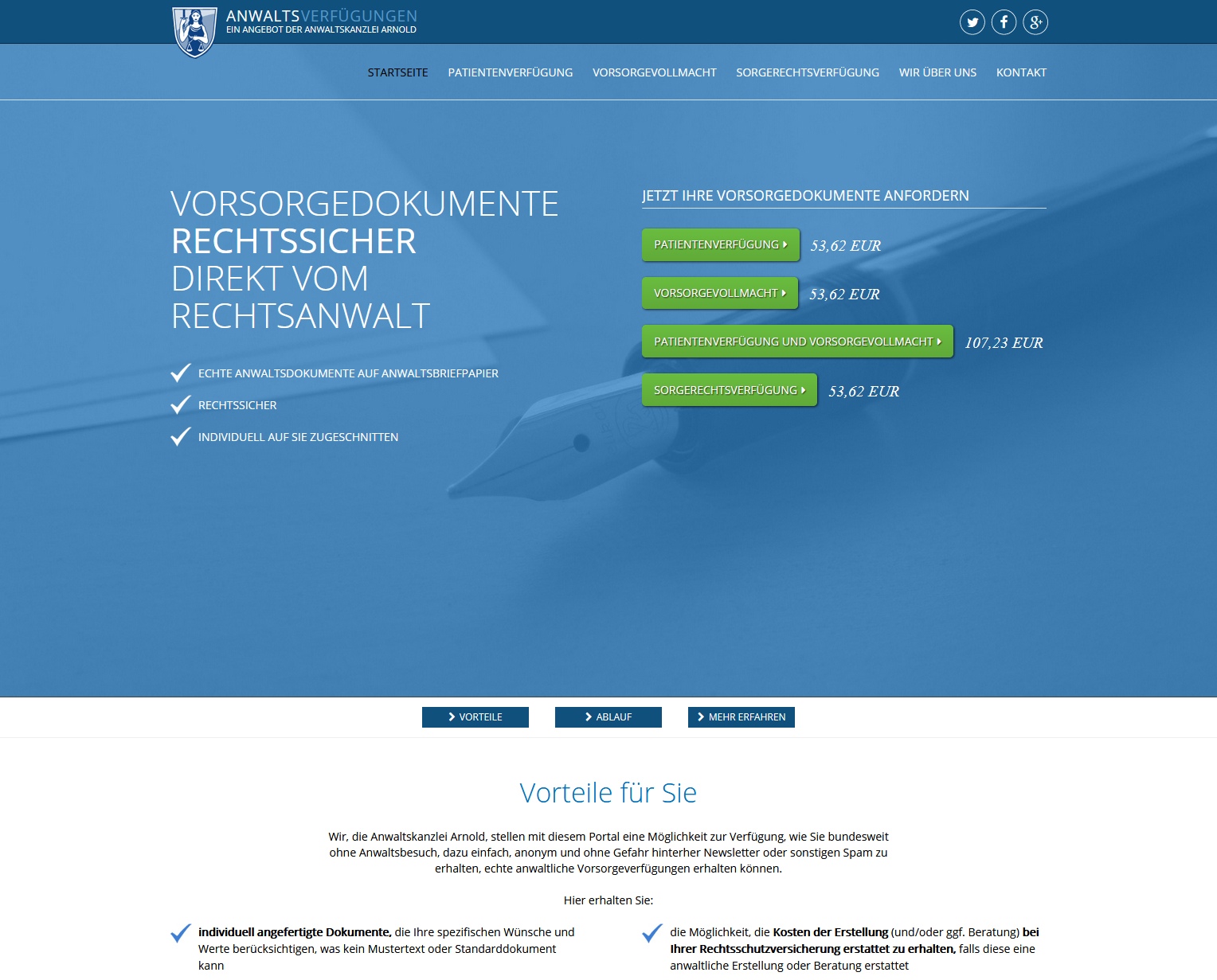 anwaltsverfuegungen.de ist ein Angebot der Kanzlei Arnold. Auf der Website ist es möglich, individualisierte Vorsorgedokumente wie Patientenverfügungen oder Sorgevollmachten mit Hilfe eines interaktiven Dialogsystems zu erstellen.