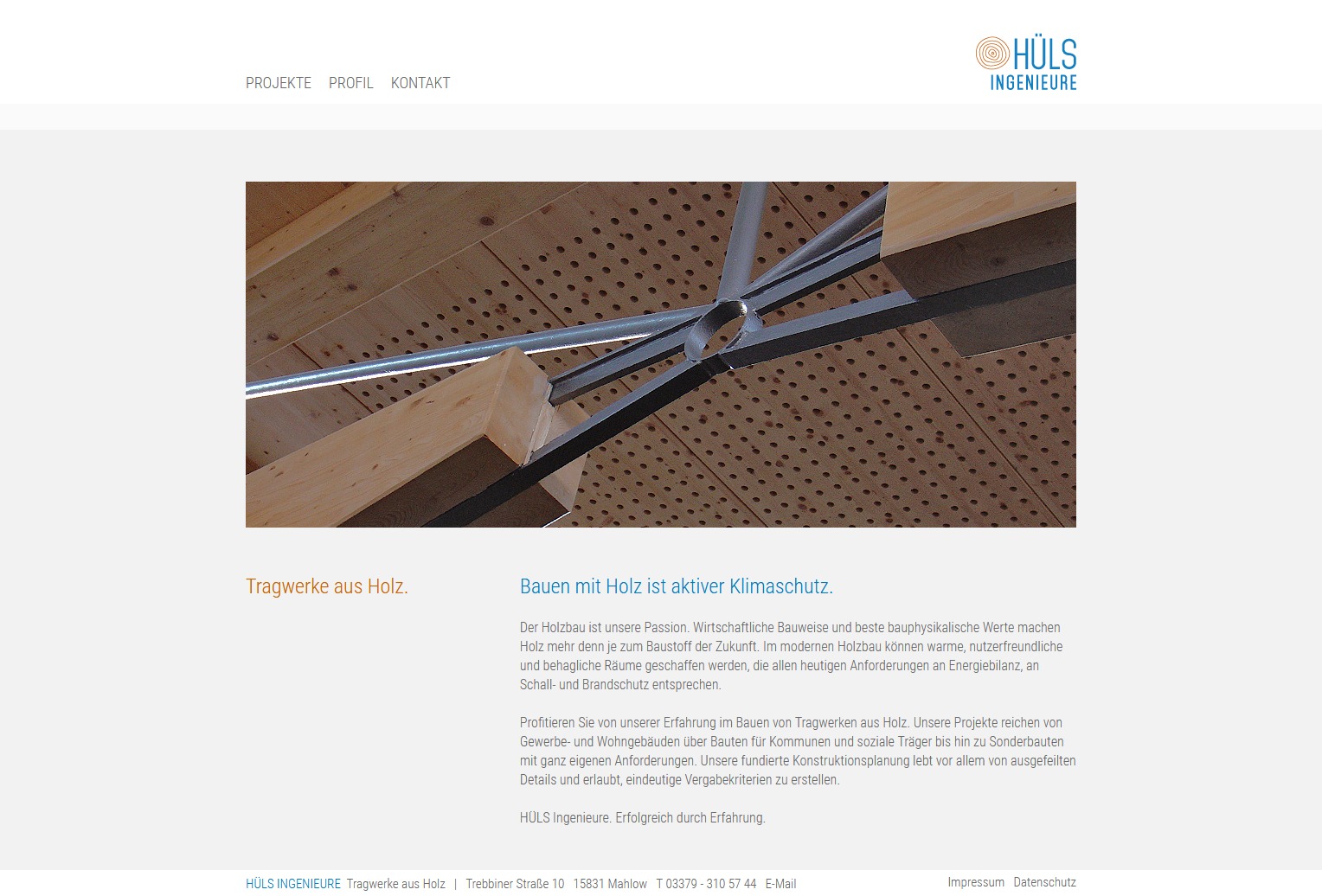 Das in Berlin ansässige Büro HÜLS Ingenieure entwickelt Tragwerke aus Holz für Wohnen und Gewerbe, Kommunal- und Sozialbauten. Auf der Website sollen vor allem die bisherigen Projekte des Unternehmens vorgestellt werden. Diese Anforderung wurde durch die in Zusammenarbeit mit Softleister entwickelte Portfolio-Lösung p.vision umgesetzt.