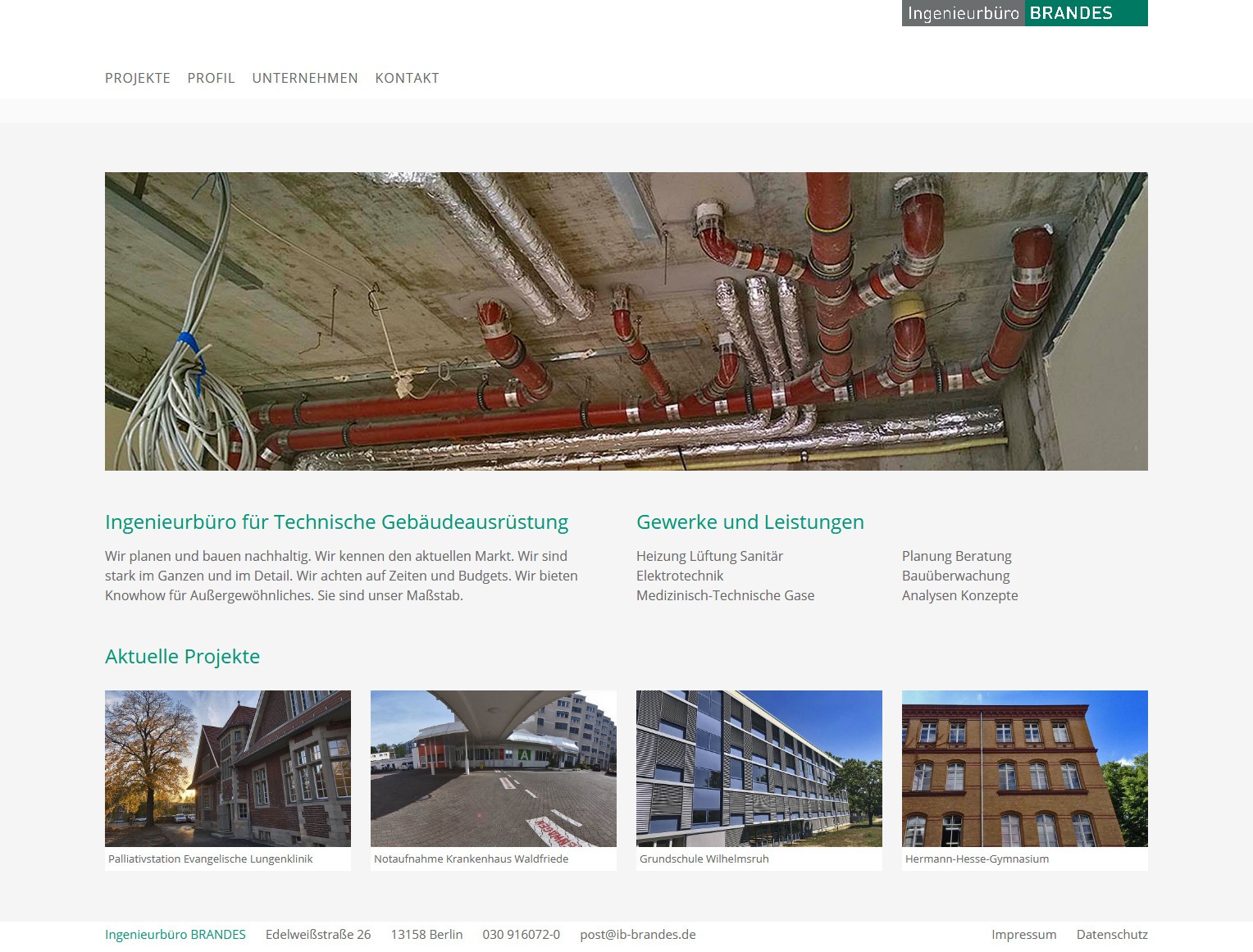 Das Ingenieurbüro Brandes plant und entwickelt technische Gebäudeausrüstungen in den Bereichen Heizung, Lüftung, Sanitär, Elektrotechnik und Medizinisch-Technische Gase. Auf der Website des Unternehmens werden dessen Leistungen und erfolgreich realisierte Projekte vorgestellt.