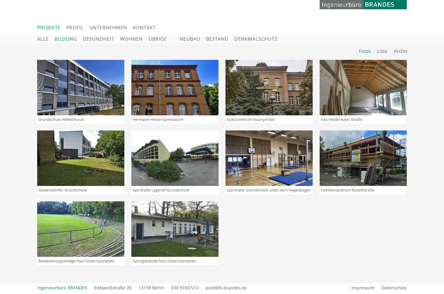 Dafür wurde eine Portfolioansicht entwickelt, die es Besuchern ermöglicht, Projekte nach Einsatzbereichen zu filtern.