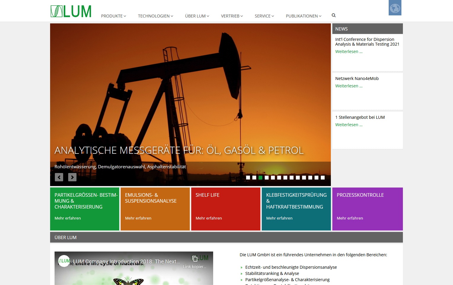 Die LUM GmbH wurde im Jahre 1994 vom geschäftsführenden Gesellschafter Prof. Dr. Dr. Dietmar Lerche als innovatives Entwicklungs-, Produktions- und Dienstleistungsunternehmen gegründet. Der Hauptsitz befindet sich in Berlin. Mittlerweile gehört LUM zu dem führenden Unternehmen im Bereich Dispersions- und Stabilitätsanalyse sowie Testung von Verbundmaterialien.