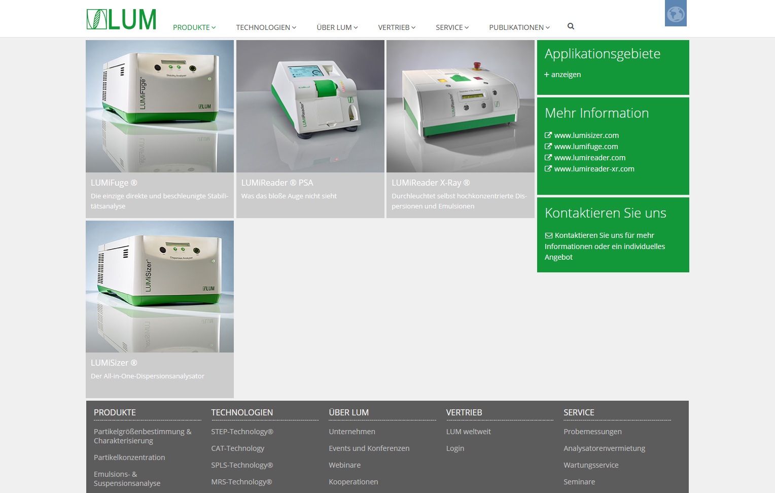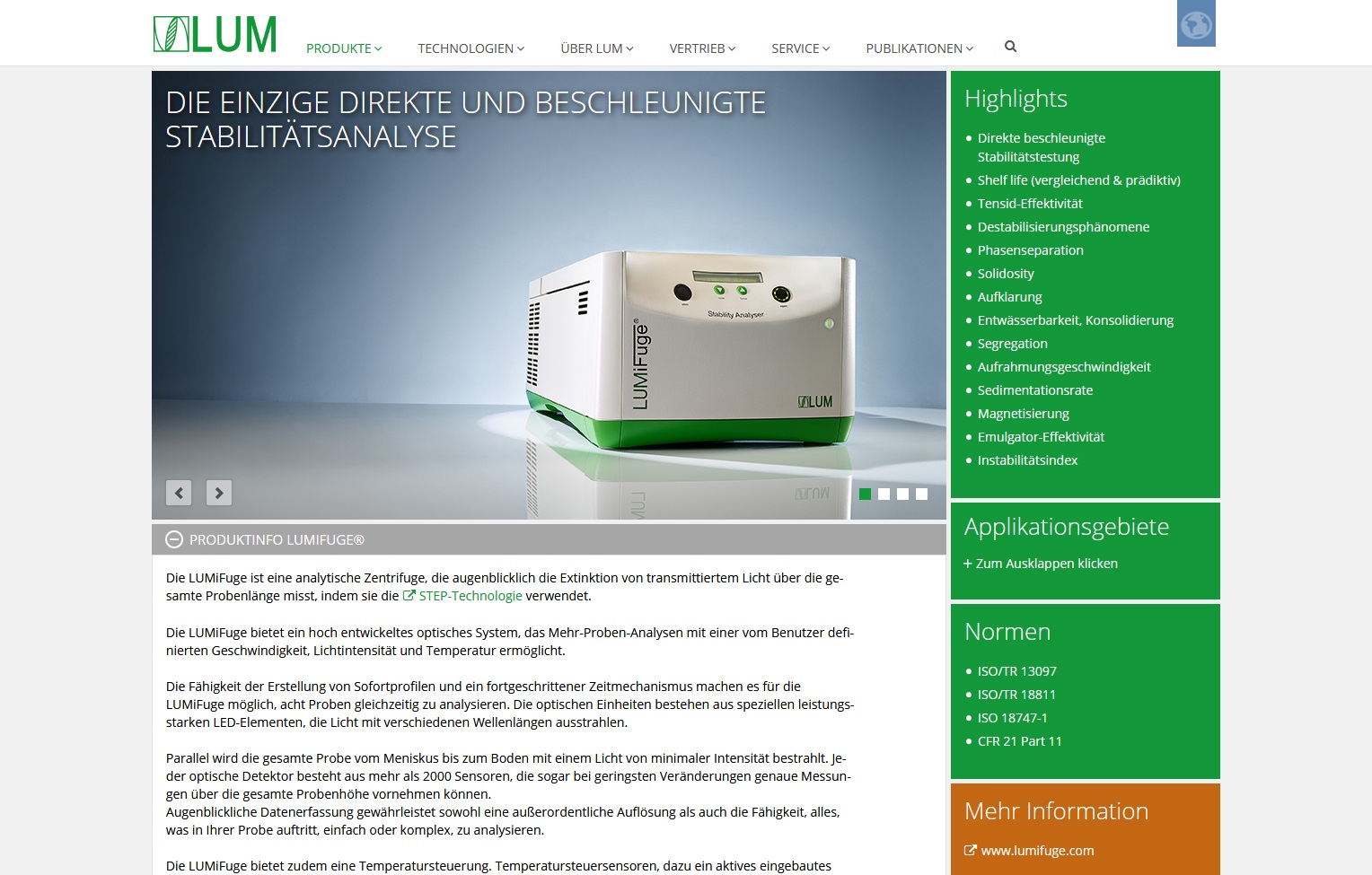 Auf der mehrsprachigen Website werden die Produkte des Unternehmens präsentiert - dabei wird aus Sicht des potentiellen Kunden nicht vom Produkt, sondern von der angestrebten Lösung ausgegangen.